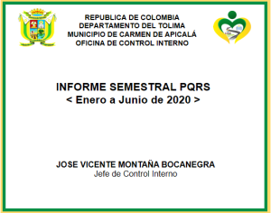 INFORME SEMESTRAL PQRS< Enero a Junio de 2020 > JOSE VICENTE MONTAÑA BOCANEGRAJefe de Control
