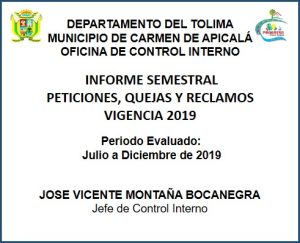 Seguimiento a las PQRSD atendidas por administración municipal de Carmen de Apicalá