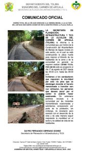 𝗢𝗠𝗨𝗡𝗜𝗖𝗔𝗗𝗢 𝗢𝗙𝗜𝗖𝗜𝗔𝗟 𝗖𝗜𝗘𝗥𝗥𝗘 𝗧𝗢𝗧𝗔𝗟 𝗗𝗘 𝗟𝗔 𝗩Í𝗔 𝗤𝗨𝗘 𝗖𝗢𝗡𝗗𝗨𝗖𝗘 𝗔 𝗟𝗔 𝗩𝗘𝗥𝗘𝗗𝗔