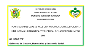 La Alcaldía Municipal de Carmen de Apicalá en cabeza del señor Alcalde