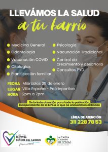 La Alcaldía Carmen De Apicala y la Secretaria de Salud invita a la comunidad