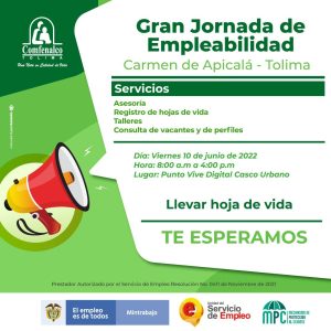 La Secretaría General y de Gobierno en articulación con Comfenalco Tolima y MinTrabajoColombia invita a toda